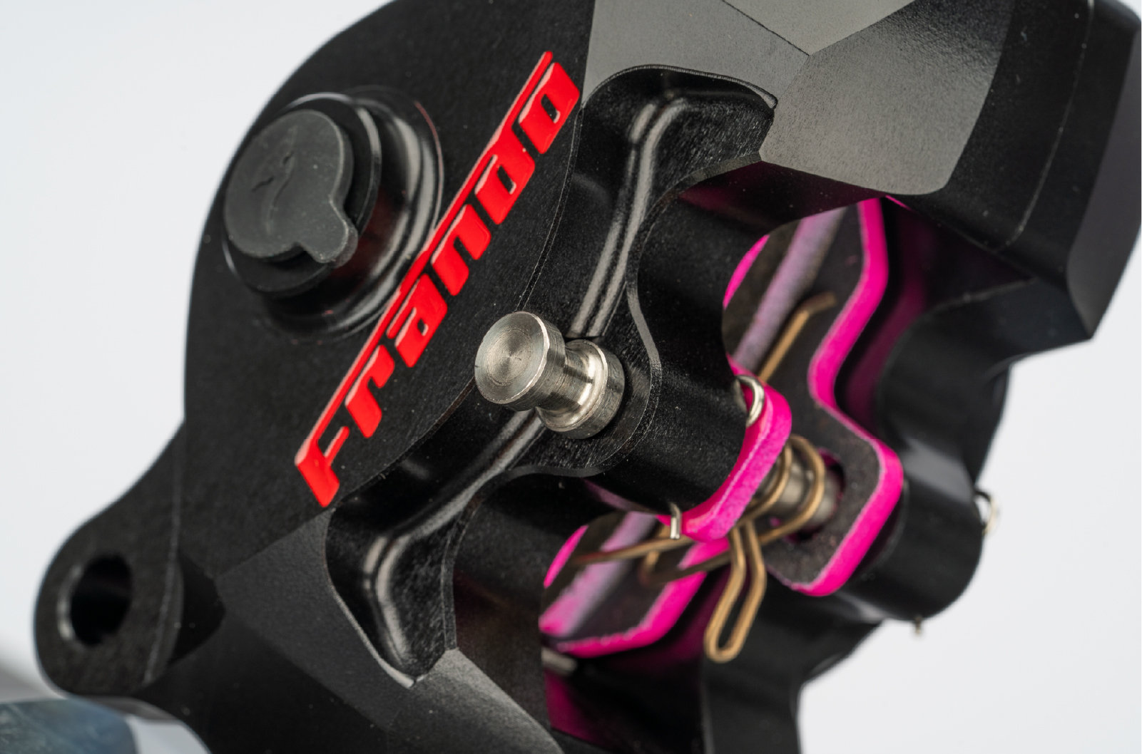 The caliper body uses an innovative dual-threaded internal hex design for superior structural integrity and rigidity.